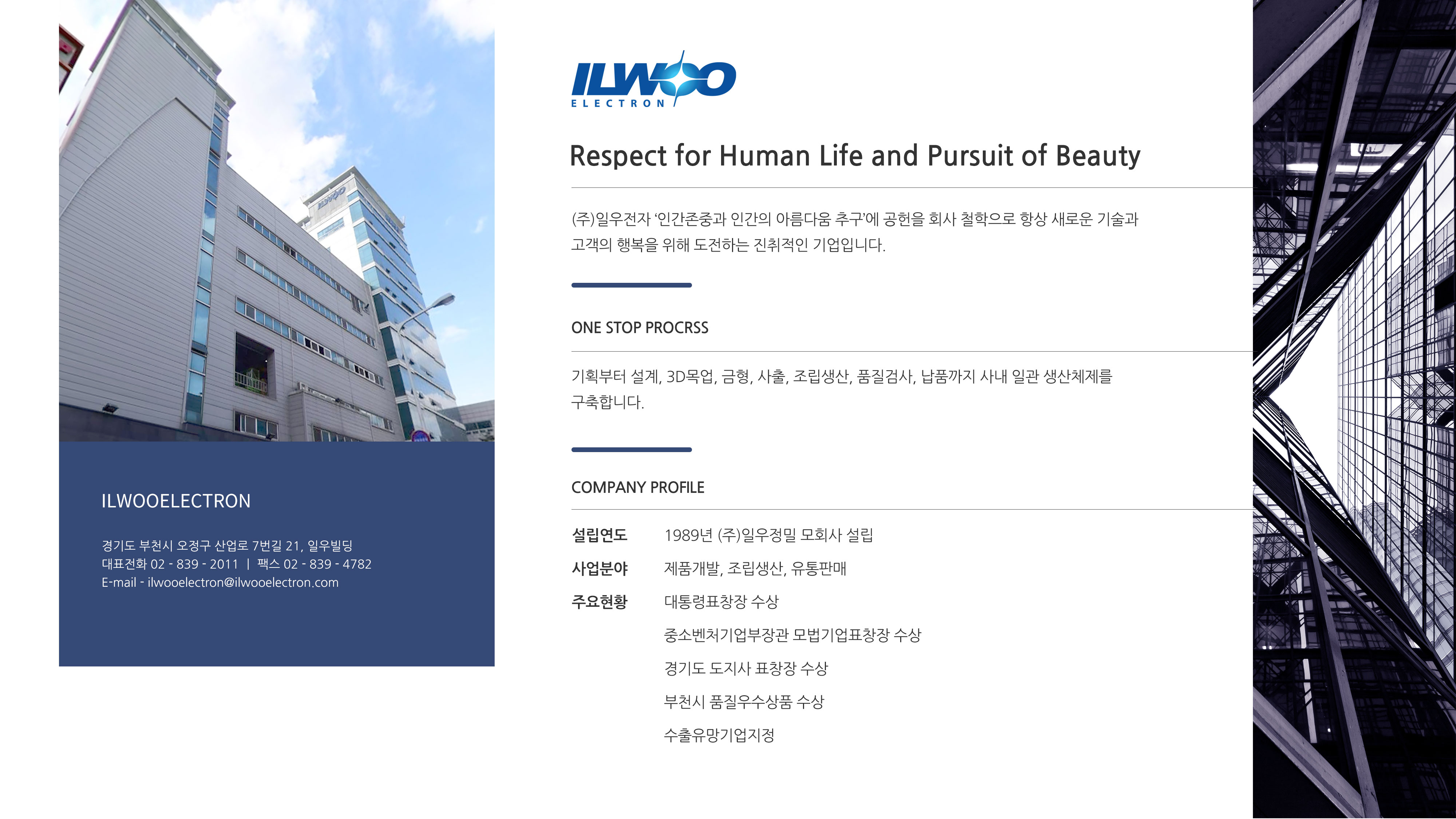 회사명 : (주)일우전자 ㅣ 경기도 부천시 오정구 산업로 7번길 21, 일우빌딩 ㅣ 대표자명 : 박수종 ㅣ 사업자번호 : 119-81-87289